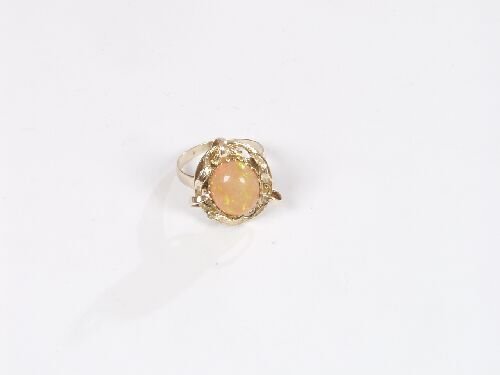 CABOCHON OVAL ORANGE OPAL SOLITAIRE NUGGET RING