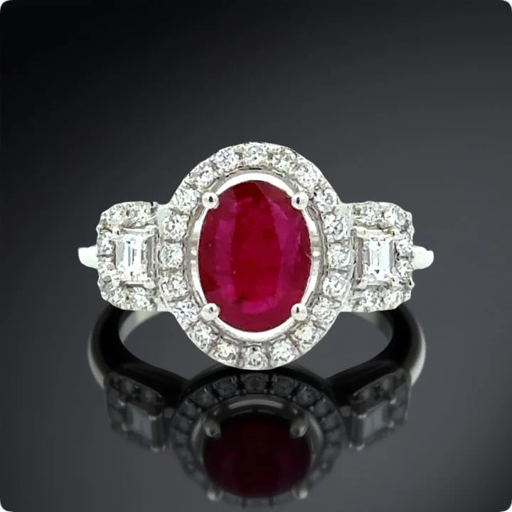 Oval Ruby, Diamond 18K White Gold Ring