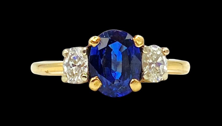 SoldVintage 1960's 3-Stone Oval Blue Sapphire Diamond Ring 18K Yellow Gold, 3.14 GrVintage 1960's 3-Stone Oval Blue Sapphire Diamond Ring 18K Yellow Gold, 3.14 Gr Make a statement with this gorgeous vintage ring! Please let us know if you have any questions. Circa: 1960's Gemstones:See Sold Price