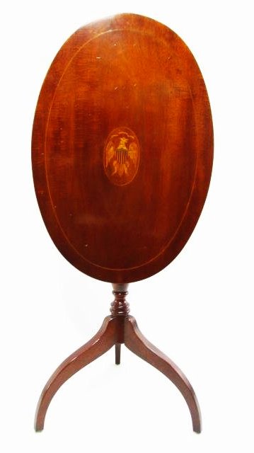 OVAL TILT TOP PEDESTAL TABLE with EAGLE INLAY