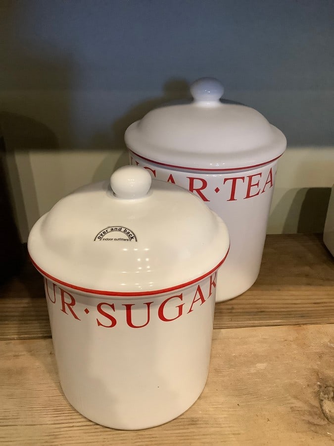 Over and back ceramic sugar/tea containers(tallest 9.5in.)