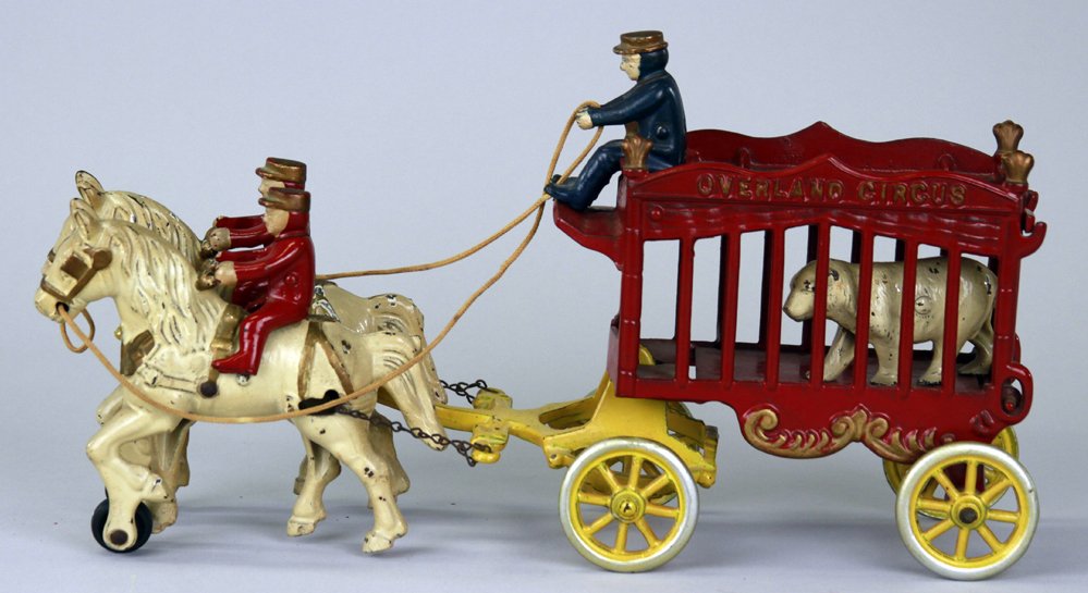 Model of 2-horse hitch with 3-seat dog cartMar 27, 2026Model of 2 draft horses hitched to hay wagonMar 27, 2026Model of 2 draft horses hitched to wagonMar 27, 2026Overland Circus Menagerie Wagon4 days LeftToy Fire WagonMar 14, 2026LINDSTROM WINDUP BARNUM BAILEY CIRCUS WAGONMar 14, 2026American Painted Tin Horse-Drawn Water WagonMar 14, 2026WATROUS MANUFACTURING CO. CAST-IRON AND STEEL CART WITH HORSE / CLOWN BELL PULL TOY2 days LeftLARGE HUBLEY ROYAL CIRCUS BAND WAGONMar 20, 2026Circus wagon with bears in cage. 23 x 16 inches sold with Composition Elephant with Monkey.7 days LeftTwo Horse Stake Body Wagon4 days LeftHUBLEY OXEN DRAWN LOG WAGONMar 20, 2026CARPENTER TWO SEAT DEPOT WAGONMar 20, 2026Unusual Yellow One Horse Stake Wagon4 days LeftPressed Steel and Cast Iron Wagons Stroller (3)Mar 28, 2026Dent cast iron fire hose reel carriageMar 27, 2026