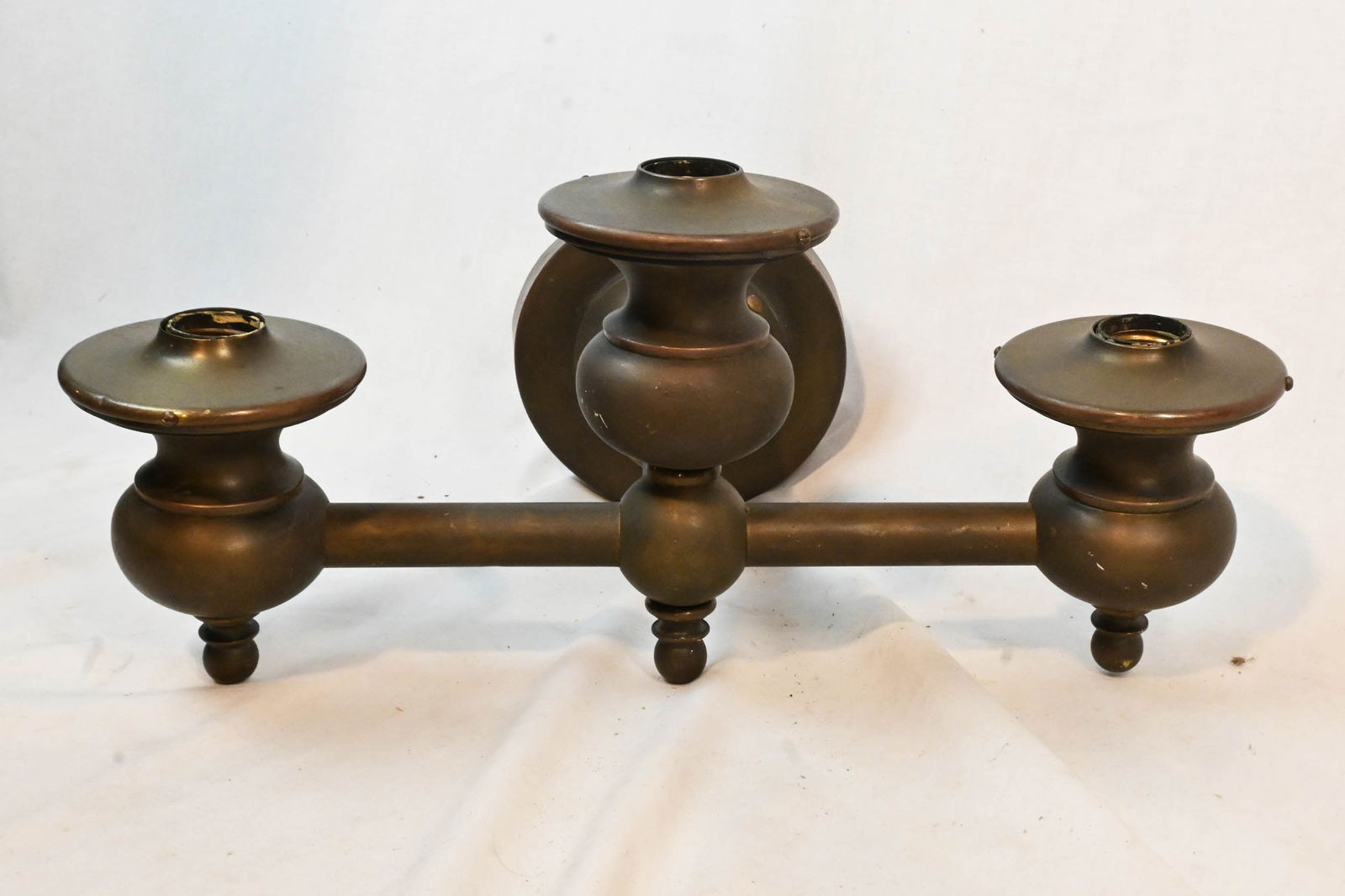 Oversized Brass Colonial 3 Light Barebulb Sconce