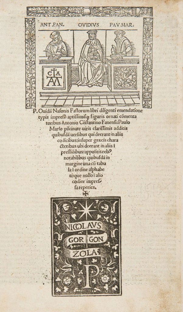 SoldAldina - Ovidio, Publio NasoneCla. Ptolemaei Inerrantum Stellarum significationes per Nicolaum Leonicum e graeco translate....P. Ovidii Nasonis Fastorum Lib. VI. Tristium Lib. V. De Ponto Lib. IIII. In Ibin. Ad Liviam Venezia, ereSee Sold Price