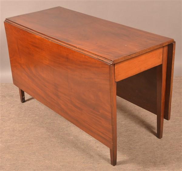 SoldHepplewhite Mahogany Gate Leg Drop Leaf Table.American Hepplewhite Mahogany Gate Leg Drop Leaf Table. 28"h. x 18-1/2"w. x 46"d. Each leaf measures 18-1/2" Condition: Good with wear.See Sold Price