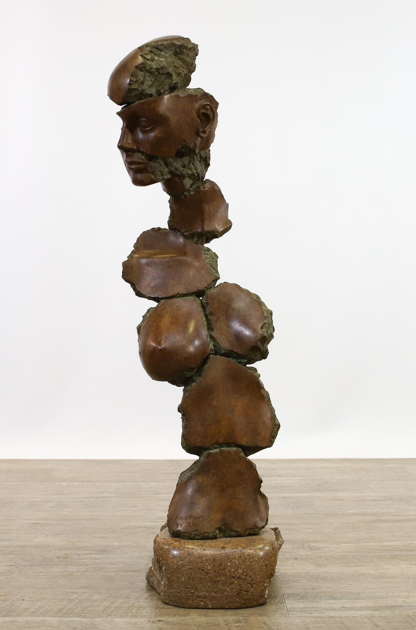 SoldP.A. Lewis 20C. Modernist Bronze Figural SculptureP.A. Lewis (20th Century). An original patinated bronze Modernist figural torso statue. Produced in a spliced style, featuring a female's head, shoulder and torso. Mounted to a oblong rotating base. ASee Sold Price