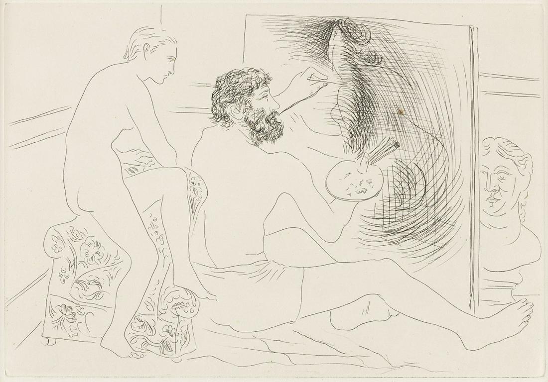 PABLO PICASSO Two etchings from Le Chef-d'oeuvre inconnu.