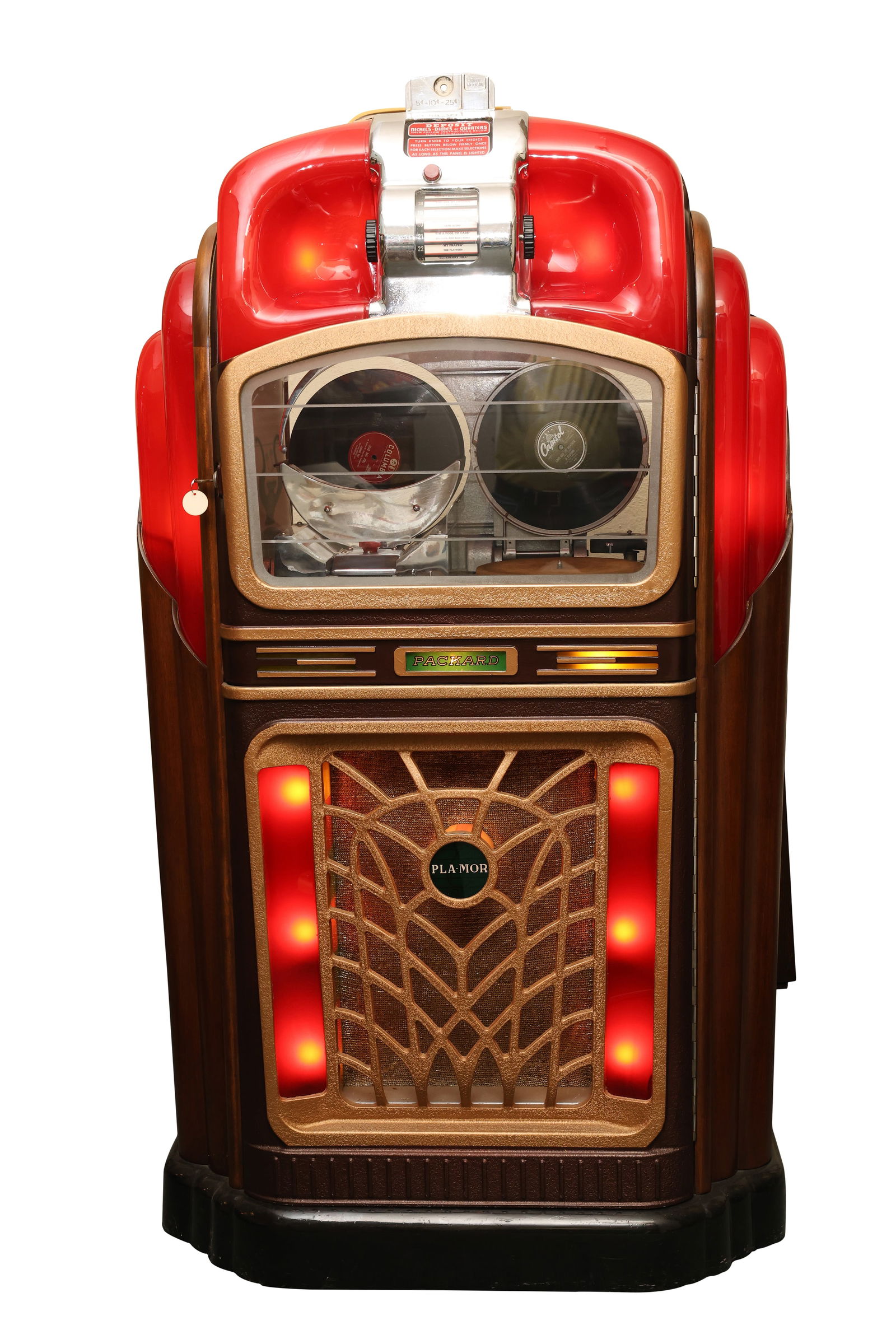 Sold1947 Packard Pla-Mor Model 7 Jukebox1947 Packard Pla-Mor Model 7 Jukebox. 24 selection jukebox playing 78 RPM records. It comes with 24 records. The jukebox appears to be fully original. In very good visual condition, the plastics are iSee Sold Price
