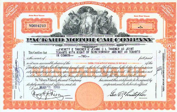 Studebaker-Packard Corporation Stock Certificate