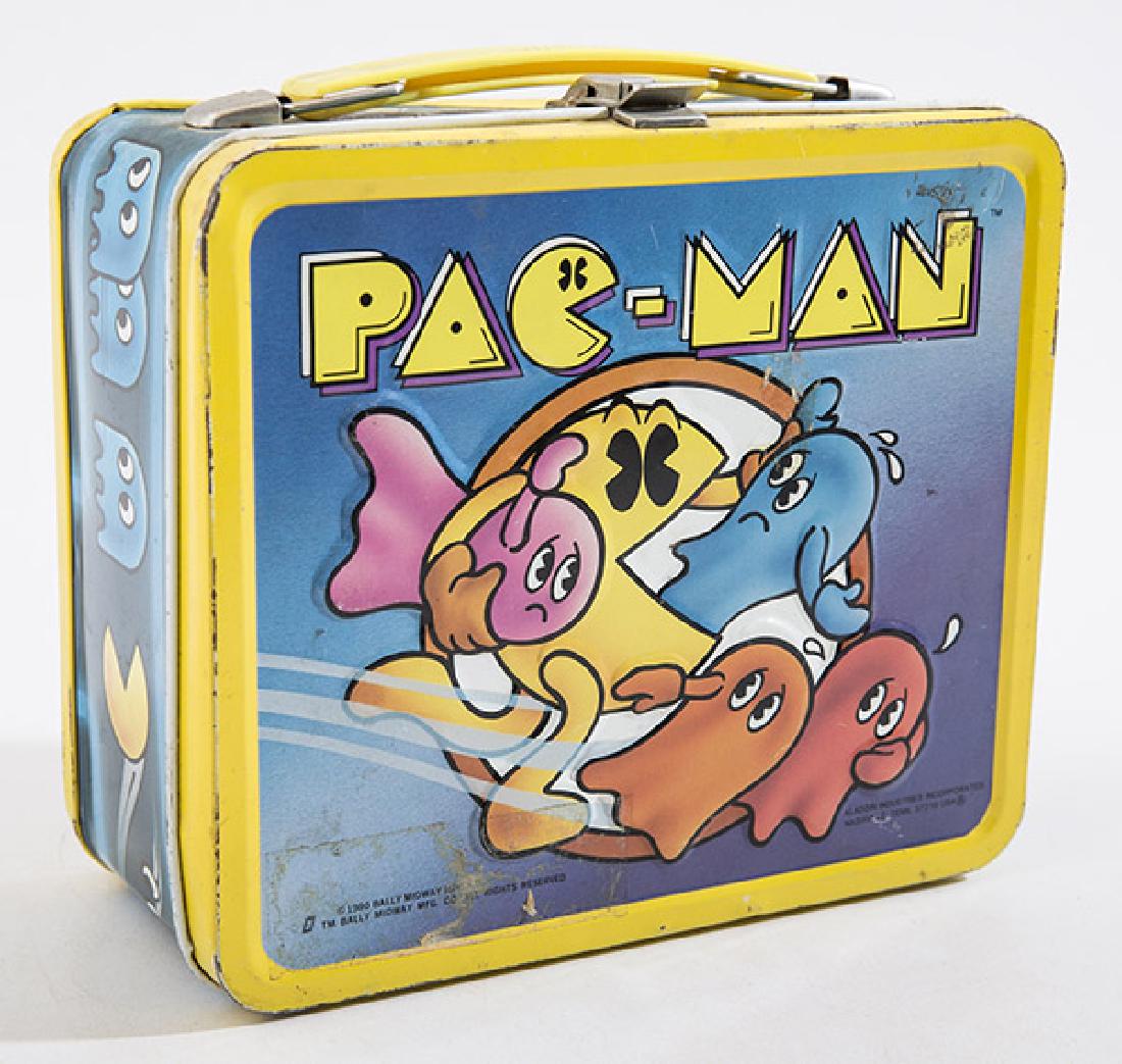 SoldPac-Man Lunchbox and ThermosPac-Man vintage tin lunchbox with original Thermos, paperwork and tags still attached. Marked 1980 Bally Midway Mfg. Co. Aladdin Industries Incorporated, Nashville Tenn. 37210 USA. Has a few small andSee Sold Price