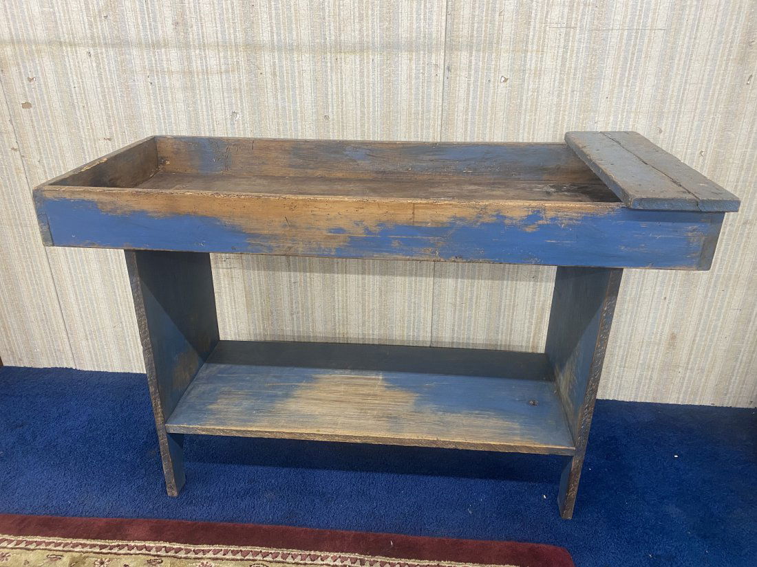 Primitive Blue Painted Side Table StandFeb 21, 2026Rustic Antique Farmhouse Work Table with Blue Frame and DrawerMar 03, 2026Country Pine Work Table with 1 drop leaf, has remanence of old green paint, 48"W x 27"T x 39 1/2" w/Feb 24, 2026DIMINUTIVE 19TH C. BLUE PAINTED DRY SINK.Feb 25, 2026Primtiive Painted Open CupboardFeb 22, 2026Georgia Attributed Paint Decorated Yellow Pine HuntboardFeb 26, 2026Antique Rustic Painted Wood Bench Stool 30 x 15 x 17.54 days LeftEarly 1900s Painted Farmhouse Table With Dark Wood TopMar 01, 20261800s Antique Primitive Table Rustic Blue Cream Charm5 days LeftAntique Gray-Blue Painted Side Table with 2 Drawers12 hrs LeftPine Armoirette in Paint14 hrs LeftPainted Sailor's Chest14 hrs LeftCONTINENTAL STYLE PAINT DECORATED CENTER TABLE6 days Left19TH C. BLUE PAINTED TABLE TOP DESK.Feb 25, 2026Primitive High Back Dry Sink, old mustard paint, scalloped apron, 2 small drawers in top, 42"W xFeb 24, 202619TH C. PAINTED CLERK’S DESK/CUPBOARD.Feb 25, 2026