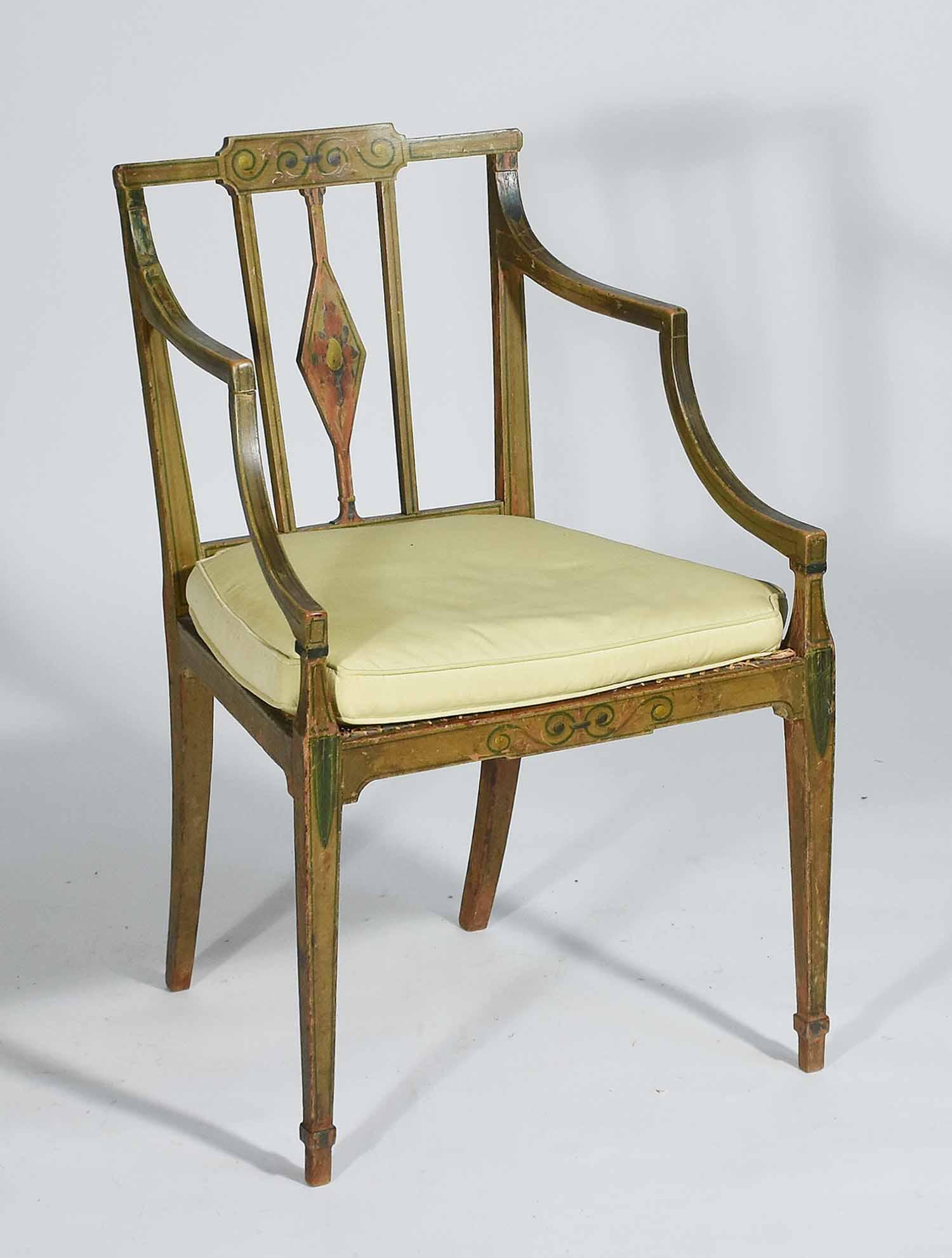 PAINT-DECORATED HEPPLEWHITE ARM CHAIR