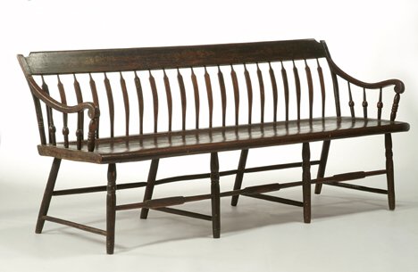 PAINTED AND STENCILED ARROWBACK WINDSOR SETTEE Fi