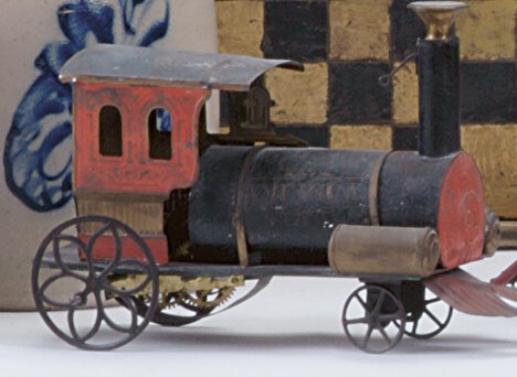 PAINTED AND STENCILED WIND-UP TINWARE TOY TRAIN E