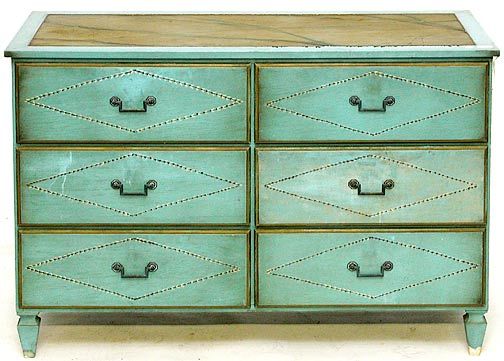 Hand-Painted Six-Drawer Dresser With Distressed Floral Motif and Brass HardwareBidhaus4.2(847)$1002 days Left