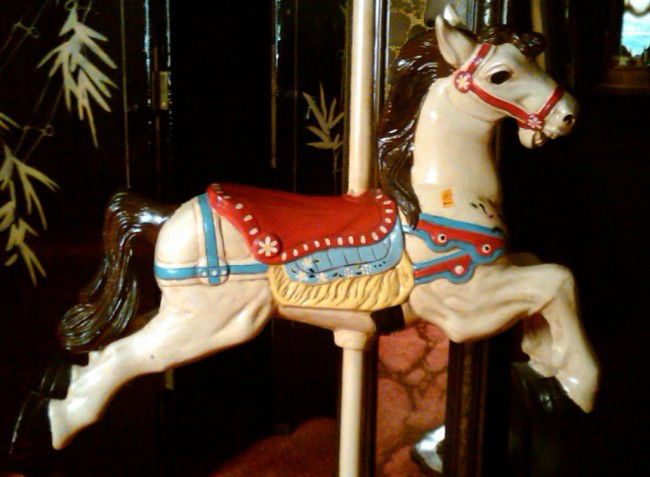 Painted carrousel horse on stand