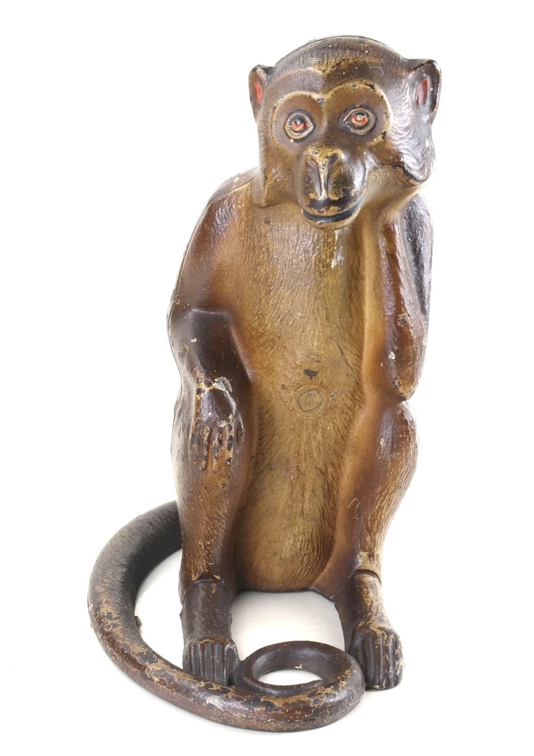 SoldEarly 20thc Cast Iron Monkey Doorstop With OriginalTitle: Early 20thc Cast Iron Monkey Doorstop With Original Paint Description: Measures 8 1/2" high.. Shipping: Domestic: Flat-rate of $35.00 to anywhere within the contiguous U.S. International: ForeiSee Sold Price
