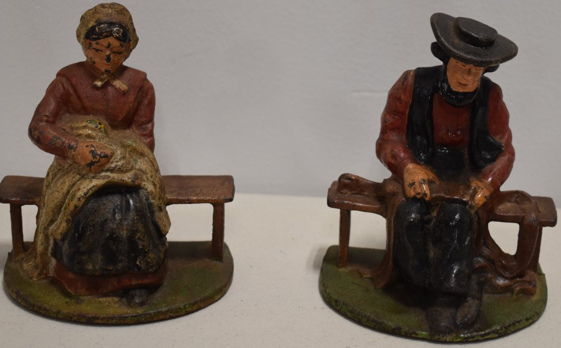 PAINTED CAT IRON AMISH COUPLE BOOKENDS