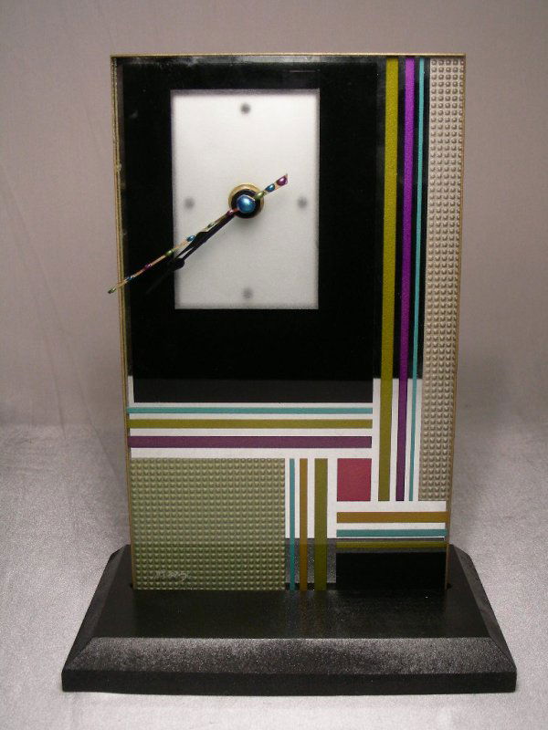 PAINTED CONTEMPORARY TILE MOTIF TABLE CLOCK