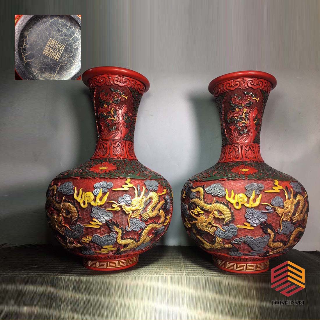 A Pair Chinese Colored Drawing Lacquerware Low Relief Mountain River Scene Design VaseQuan Rong Gallery4.3(334)$6903 days Left