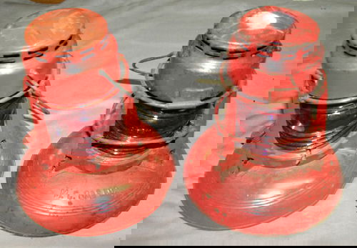 PAINTED METAL TRAIN LANTERNS, 2 PCS., H 13", D