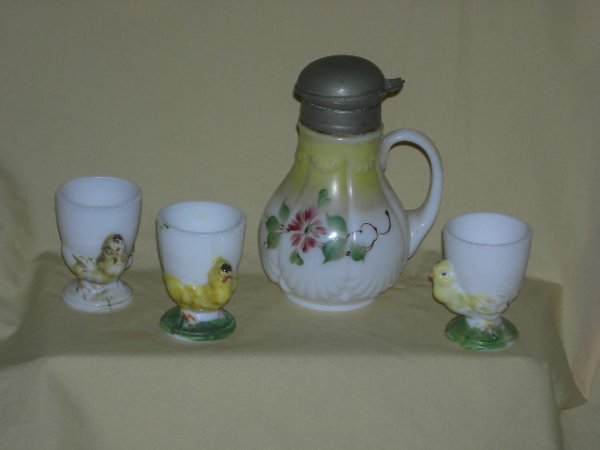 SoldUnmarked Pair Victorian Figural Salt and Pepper ShakersUnmarked Pair Victorian Figural Salt and Pepper Shakers Pair 3" Figural Salt and Pepper Shakers - Milk Glass, Painted Chick with Silverplate Figural Heads - Nice QualitySee Sold Price