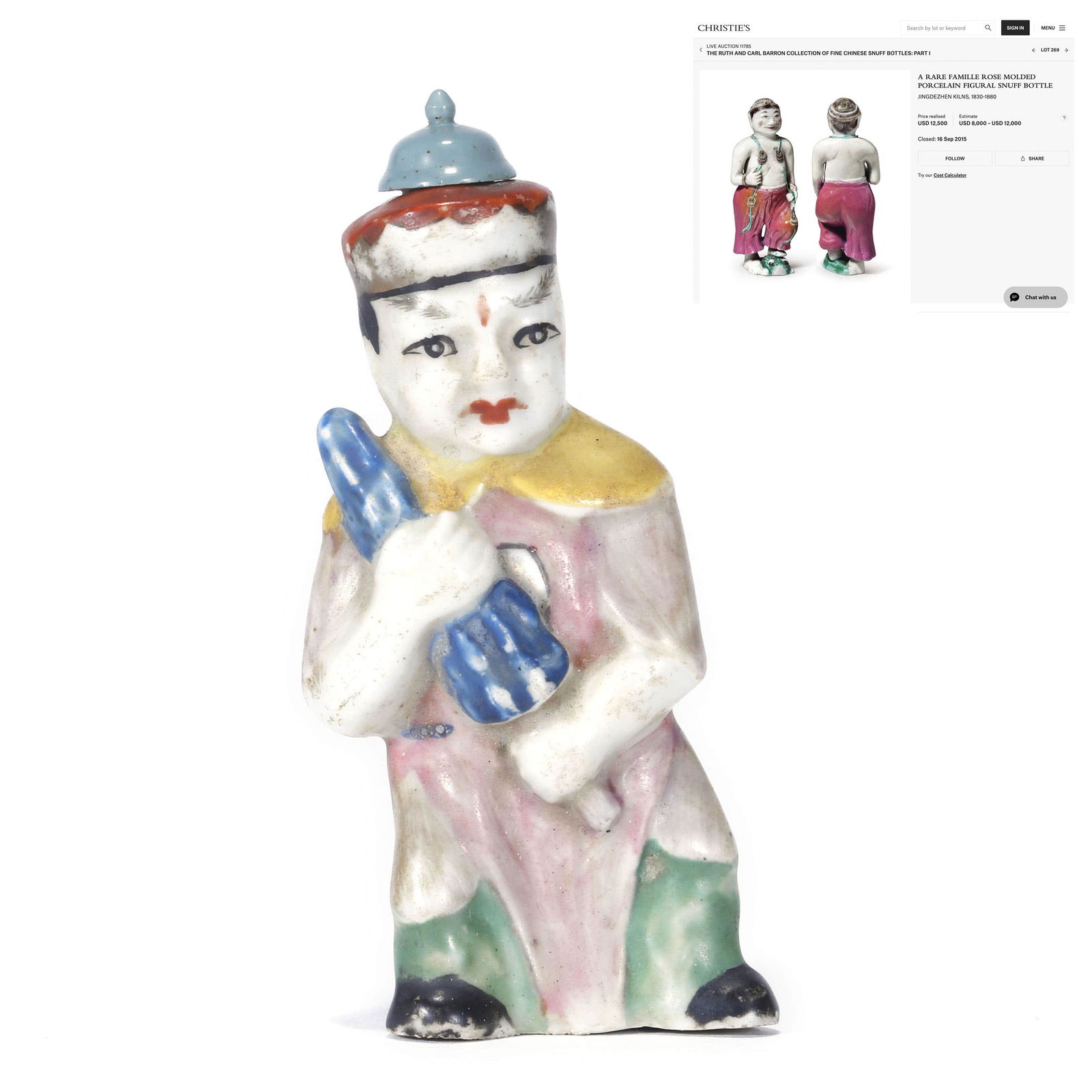 Chinese Famille Verte Porcelain Figure of a BoyFeb 12, 2026Magical Music Chinese Handmade Porcelain Snuff BottleFeb 26, 2026Chinese Famille Rose Porcelain Figural3 days LeftChinese Famille Rose Porcelain figure Chinese Boy With A Duck R50Feb 17, 2026Chinese Qing Dynasty Famille Rose Porcelain Vase with Figural Scenes2 days LeftFresh Faced Chinese Handmade Porcelain Snuff Bottle5 days LeftYouthful Chinese Porcelain Snuff Bottle6 days LeftA FAMILLE ROSE SNUFF BOTTLE WITH FIGURAL STORY DESIGNFeb 14, 2026A Chinese Famille Rose republic finely decorated porcelain vaseFeb 24, 2026A Qianlong imperial material vessel enamel Western character picture appreciation bottleMar 07, 2026Youthful Chinese Porcelain And Carnelian Snuff Bottle5 days LeftPorcelain Snuff Bottle Container Children DesignFeb 22, 2026A Famille Rose Porcelain Figure of Budai, Incised “Zhu Chunfa Zao?? Mark2 days LeftChinese Porcelain Qing Style Dressing Tribal Basket Lady FigureA FAMILLE ROSE SNUFF BOTTLE WITH FIGURAL STORY DESIGNFeb 14, 2026A Pair of Chinese Famille Rose Porcelain Figures of Immortals 18th CenturyFeb 18, 2026