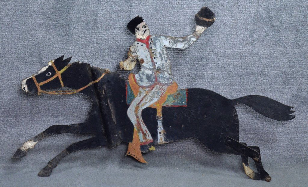 Folk Art Metal Target Painted Metal Cut-Out Figure of a Horse and Rider1 day LeftSheet Metal Running Horse Folk WeathervaneMar 14, 2026Sheet Metal Horse and Armored Rider Folk SilhouetteMar 14, 2026Horse Drawn Fancy GigMar 07, 2026Jenny The Balking Mule Lithographed Wind Up ToyMar 07, 2026Will Rogers Wandering Cowboy Inspired Bronze Statue - 9" x 8"Jul 15, 2025FOLK ART CARVED AND PAINT-DECORATED LARGE-SCALE HORSE FIGUREMar 06, 2026Inspired Frederic Remington Cowboy Bronze Statue Sculpture Country Western Art 17" x 21"Mar 11, 2026Elaborate Pony CartMar 07, 2026Rare Royal Tichelaar Makkum Porcelain doll cowboy Figurines hand-painted1 day LeftWATROUS MANUFACTURING CO. CAST-IRON AND STEEL CART WITH HORSE / CLOWN BELL PULL TOYMar 05, 2026Iron and Wood Figural Velocipede2 days LeftInspired Rodeo Bull Rider Bronze Sculpture - 24" x 19"Mar 10, 2026Inspired Rodeo Bull Rider Bronze Sculpture - 24" x 19"Mar 05, 2026Breath Bronze Cowboy SculptureMar 11, 2026GERMAN HAND PAINTED TIN WINDUP MAN RIDING HORSEMar 14, 2026
