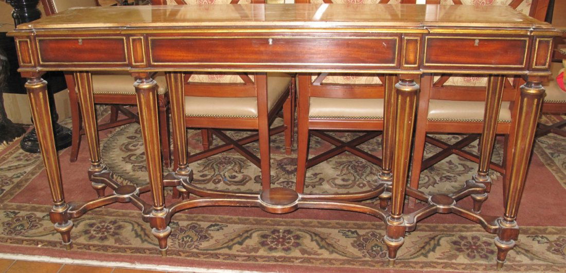 French console table with faux marble top.2 days LeftGilt wood onyx top console table, onyx crackMar 02, 2026Shaped console4 days LeftMaitland Smith Italian Regency Marble Top Console TableMar 01, 2026Mahogany Console Table with Turned Legs and Stretcher BaseMar 01, 2026Entry Console Table Wood Marseille Collection Bordeaux Finish6 days LeftChelsea House Adams Console Table 18th Century Design Wood Brown Finish3 days LeftBernhard Rohne for Mastercraft Console TableA GILTWOOD AND PAINTED SATINWOOD DEMI-LUNE CONSOLE TABLE, IN THE MANNER OF THOMAS CHIPPENDALELouis XVI Style Painted Console / Hall TableMar 02, 2026Louis XVI Style Mirrored Back Console TableMar 06, 2026Rococo Revival Style Carved Console TableMar 06, 2026Painted Demilune Hall Table / Console1 day LeftMahogany Console Table6 days LeftSingle Drawer Oval Parlor TableMar 06, 2026CARVED & GILDED MARBLE TOP CONSOLE TABLEMar 08, 2026