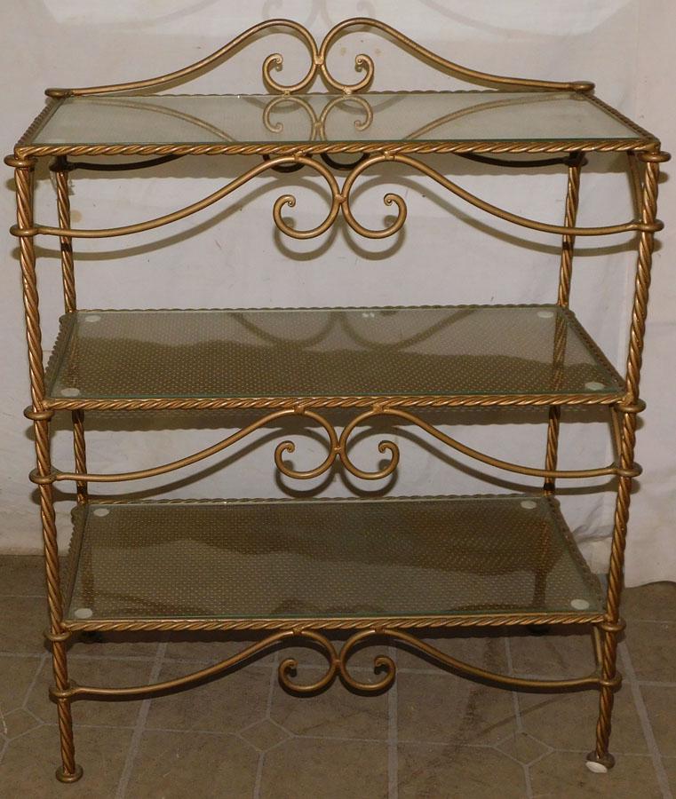 Vintage Country French Iron Brass Bakers Rack with Milk Glass ShelvesMynt Auctions4.4(832)$1005 days Left