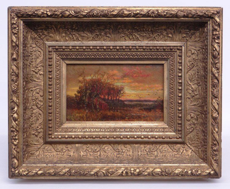 Sold19TH C. BRITISH LANDSCAPE PAINTINGOil on board. Signed lower right. Dimensions: (Frame) H 20.5" x W 24.5", (Sight) H 14" x W 17.5" Condition: Surface dirt. Areas of crazing. Loss and wear to edges of painting that meet the frame. LossSee Sold Price