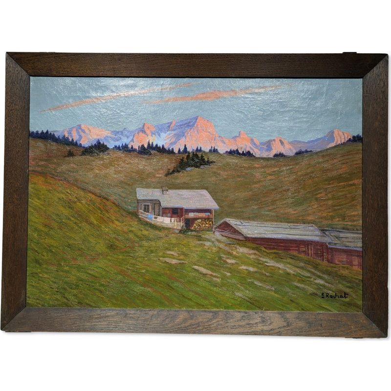 Painting "Chalets" signed S. ROCHAT
