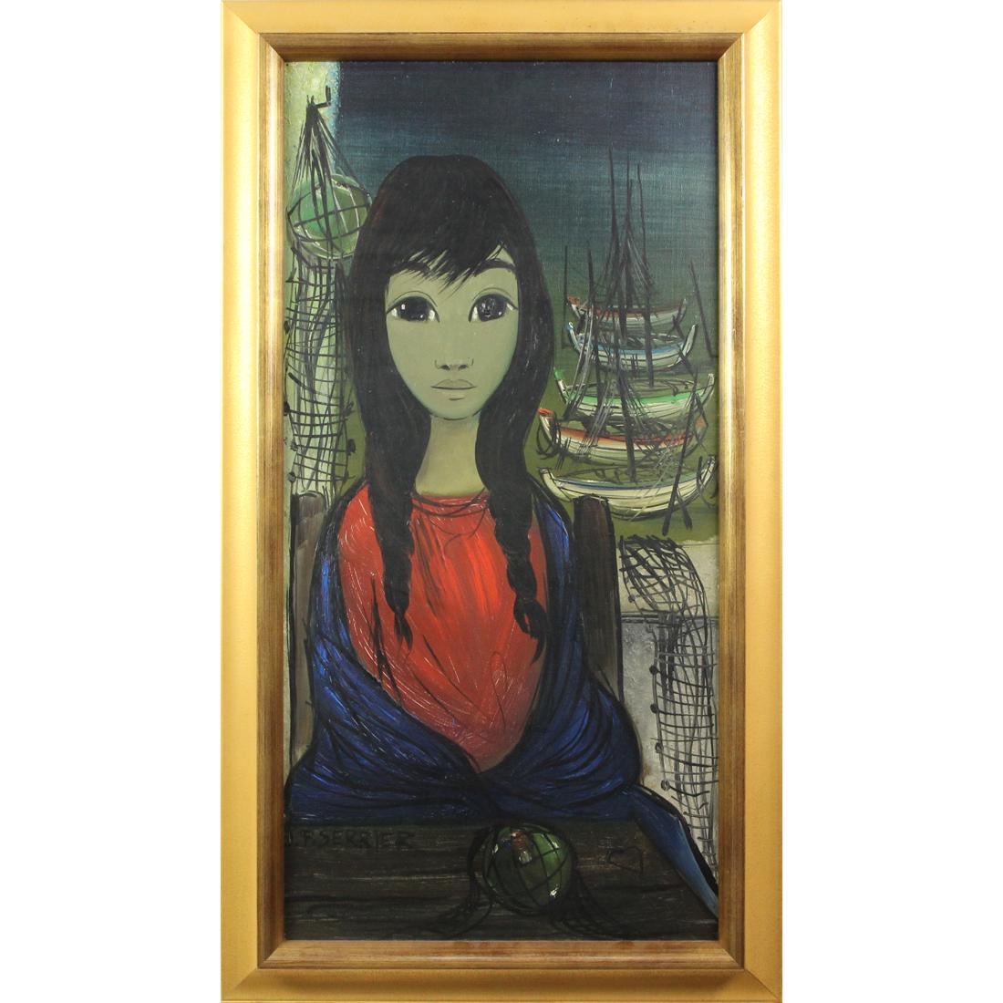 Signed Jean Pierre Serrier (French, 1934-1989) Whimsical Style Woman's Portrait Oil Painting onBKG Antique Mall4.4(440)$1003 days Left