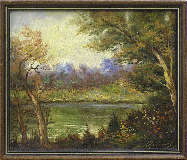 Vintage Scenic Oil On Canvas "Lake Landscape"