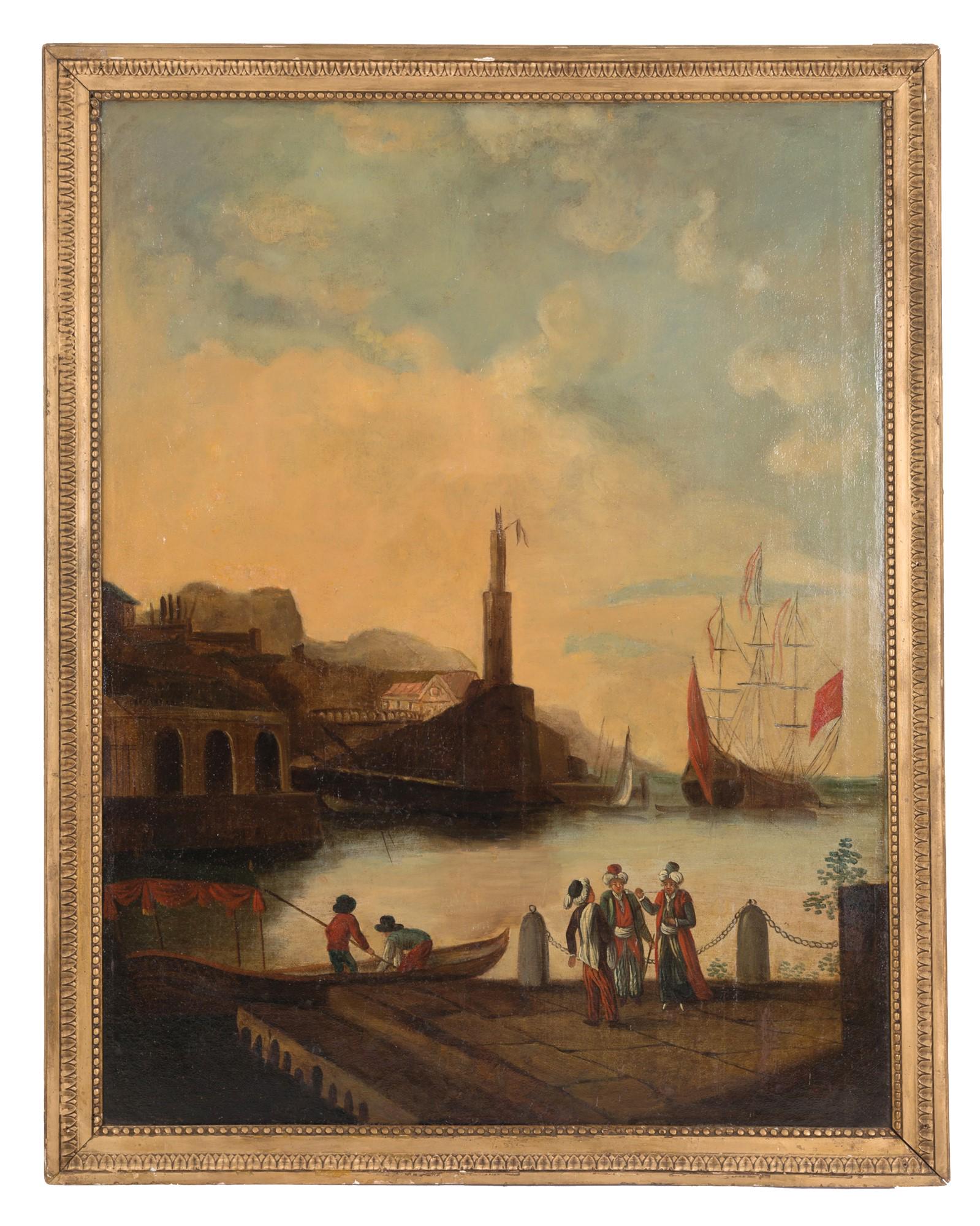 Painting "PORT VIEW WITH CHARACTERS ''