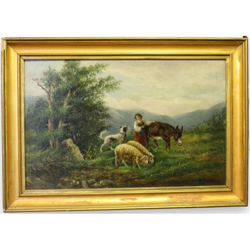 Painting "Shepherdess" signed R. PERNA