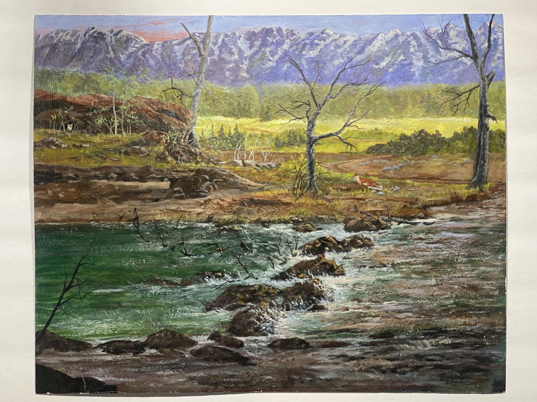 Oil painting Mountain river Mykhailo Burdylo