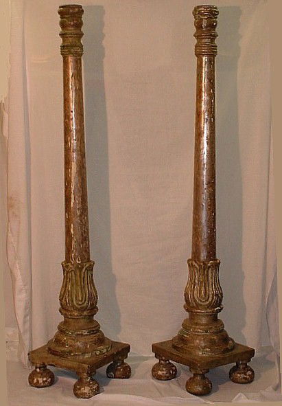 Pair 17th/18th C Italian silver-leaf torcheres. H