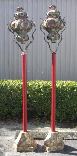 PAIR 18TH C VENETIAN POLYCHROME METAL LANTERNS