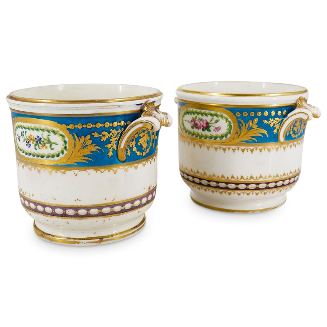 Pair 18th Cent Sevres Porcelain Cachepots