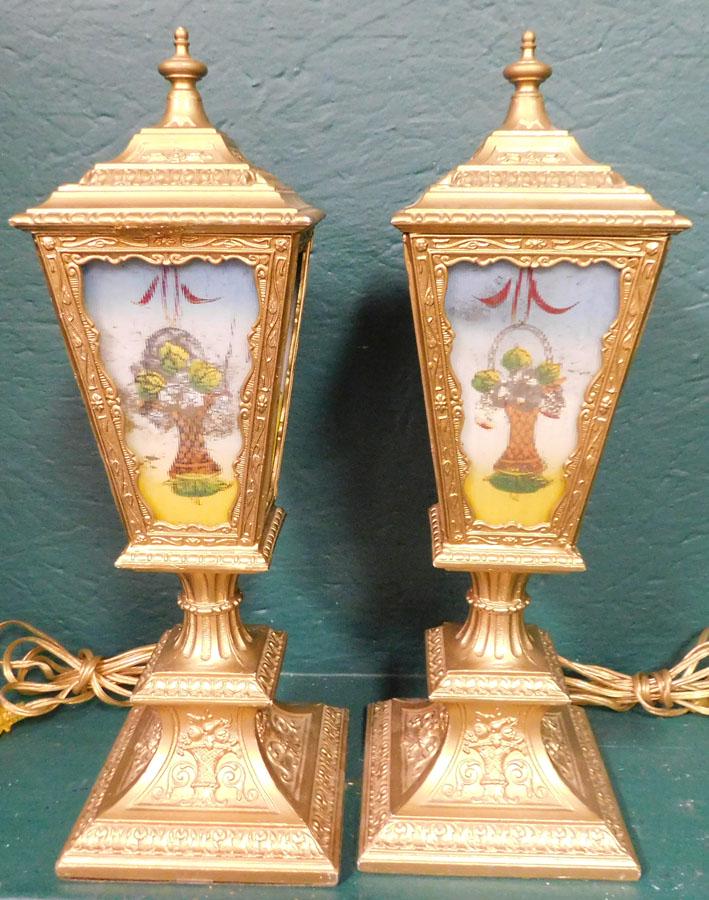Pair 1920's Reverse Painted Torchiere Lamps