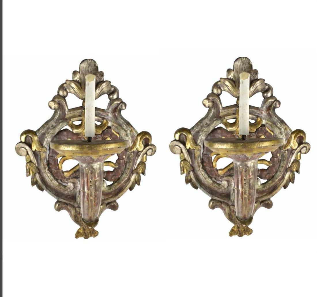 (4) CARVED & POLYCHROME PAINTED ARM-FORM CANDLE SCONCES2 days LeftPair of Italian Baroque Bronze Wall Lights7 days LeftPair of Gilt Bronze Neoclassical Style Sconces7 days LeftItalian Baroque Candelabra Style Wall Sconce, PairVintage Pair of Solid Brass Wall-Mount Sconces.Pair of Italian Gilt Wood 8-Light Candle Sconces7 days LeftPair Louis XVI Style French Sconces / Wall Lights, Ebony, Bronze, Maison BaguesPair of French, 19th Century Giltwood Mirrored Back Wall SconcesSet of 2 Antique 19th Century French Giltwood Wall SconcesMar 03, 202619th Century French Regence Giltwood Mirrored Candle Sconces Set of 2Mar 01, 2026Elegant Pair of Gold Country French Candelabra Sconces Made in ItalyFeb 27, 2026Exquisite Pair of Silver Leaf Italian Lighted Wall SconcesMar 02, 2026PAIR OF FRENCH IRON WALL MOUNT CANDLE SCONCESMar 08, 2026Maitland Smith Chinese Chippendale Brass Wall Sconces Pair with Mirrored Backs7 days LeftPair of Vintage Estate Brass Wall Candleholder Sconces3 days LeftPR VINTAGE ITALIAN PALLADIO GILTWOOD WALL SCONCESMar 07, 2026