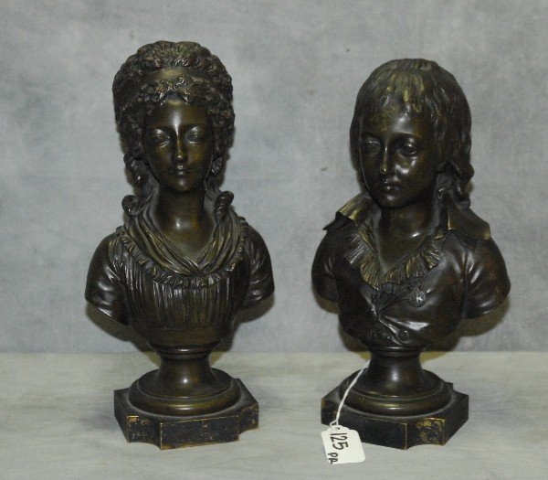 Pair 19th c Bronze busts . H:12"