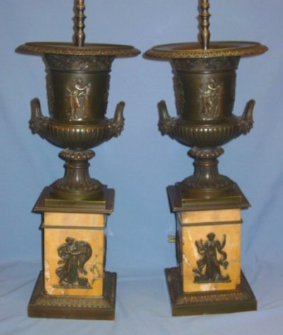 PAIR 19TH C. BRONZE FIGURAL URNS