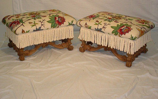 Pair 19th C Continental Rococo style carved walnut