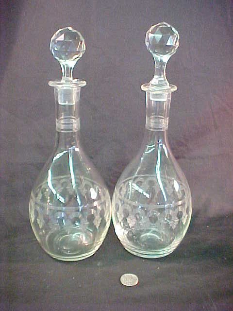 PAIR 19th Cent ETCHED CRYSTAL DECANTERS