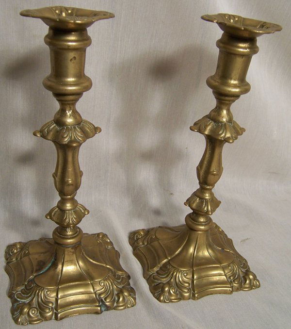 Pair 19th century Queen Anne candlesticks