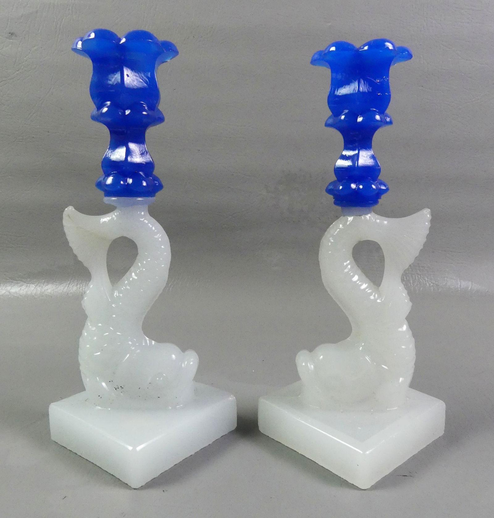 PAIR 2 COLOR SANDWICH DOLPHIN CANDLESTICKS