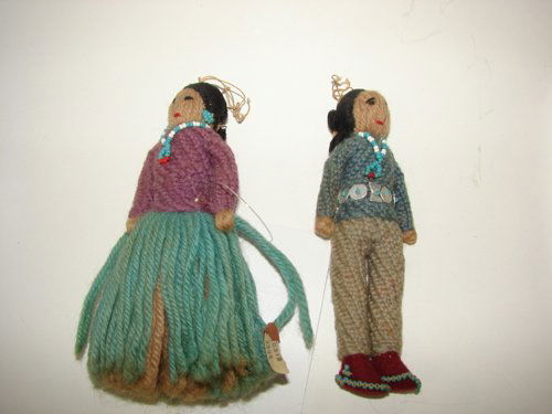 Pair (2) Native American Wool Bead Dolls, C. 1950