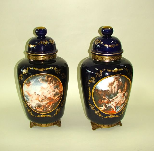 A pair of French Sevres style cobalt porcelain vases decorated with hand painted scenesOstantix Auctions4.4(13)€2001 hr Left